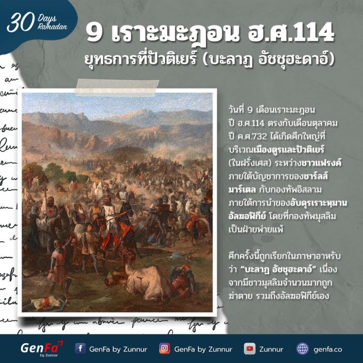 9 เราะมะฎอน ฮ.ศ.114 : ยุทธการที่ปัวติเยร์ (บะลาฏ อัชชุฮะดาอ์) Today in I-History, บทความ, ประวัติศาสตร์, เหตุการณ์สำคัญ, แผนภาพBy genfaมีนาคม 31, 2023:: 9 เราะมะฎอน ฮ.ศ.114 : ยุทธการที่ปัวติเยร์ (บะลาฏ อัช…