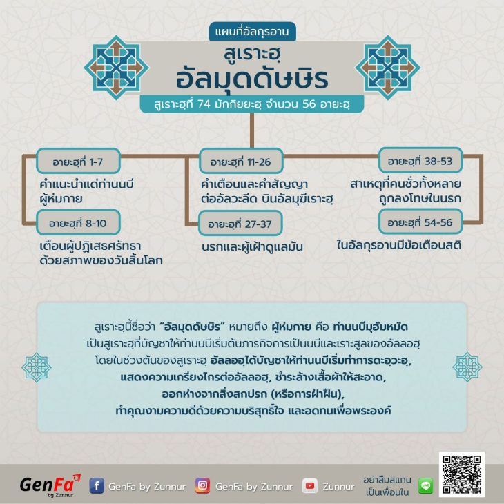 :: แผนที่อัลกุรอาน :: สรุปภาพรวมสูเราะฮฺที่ 74 : อัลมุด…
