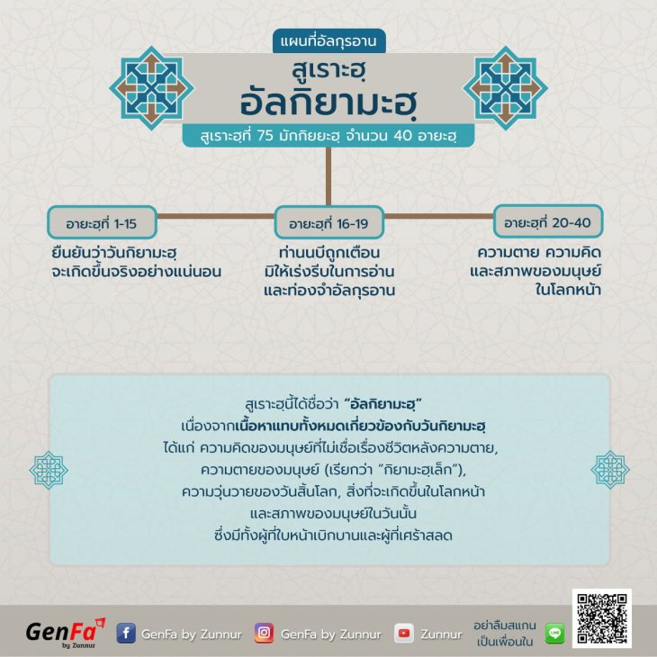 :: แผนที่อัลกุรอาน :: สรุปภาพรวมสูเราะฮฺที่ 75 : อัลกิย…