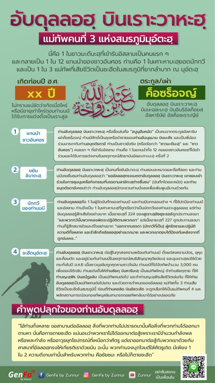 :: อับดุลลอฮฺ บินเราะวาหะฮฺ : แม่ทัพคนที่ 3 แห่งสมรภูมิ…