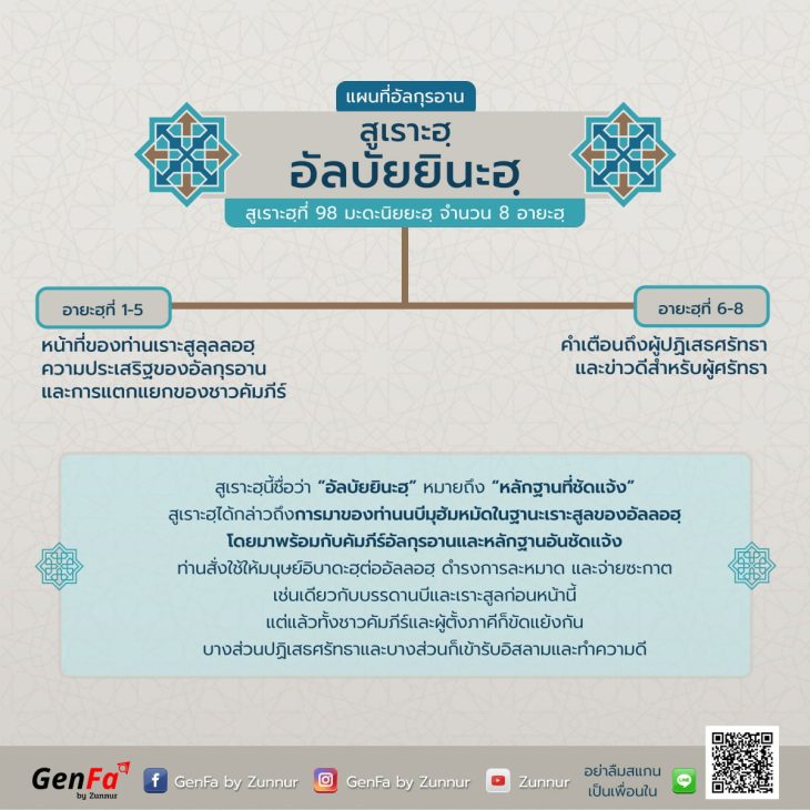 :: แผนที่อัลกุรอาน :: สรุปภาพรวมสูเราะฮฺที่ 98 : อัลบัย…
