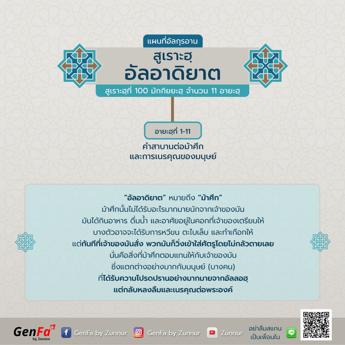 :: แผนที่อัลกุรอาน :: สรุปภาพรวมสูเราะฮฺที่ 100 : อัลอา…