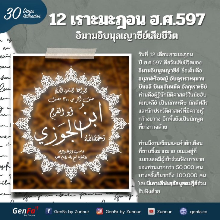 :: 12 เราะมะฎอน ฮ.ศ.597 : อิมามอิบนุลเญาซีย์เสียชีวิต :…