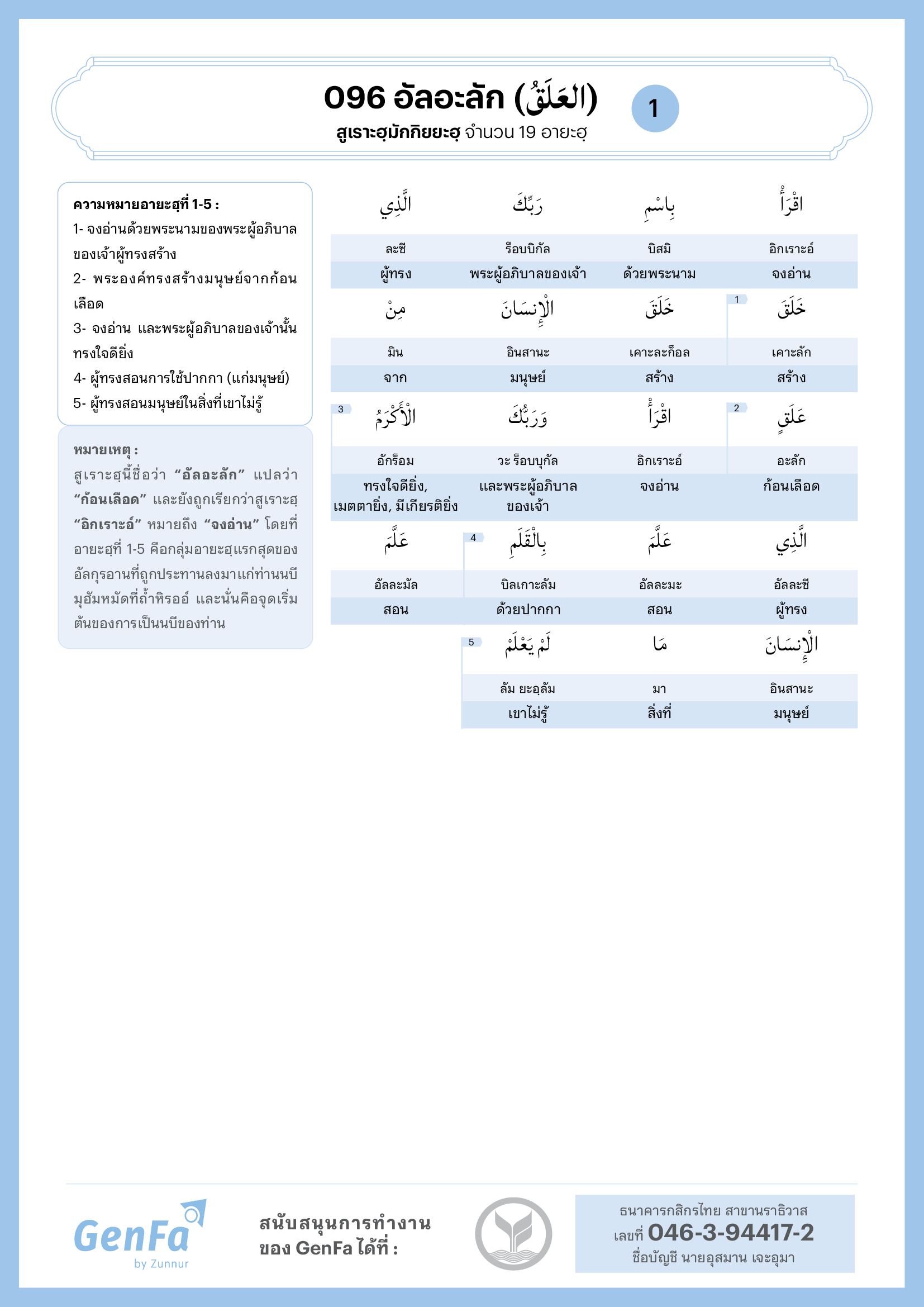 อัลกุรอาน : คำต่อคำ สูเราะฮฺที่ 96 : อัลอะลัก **…