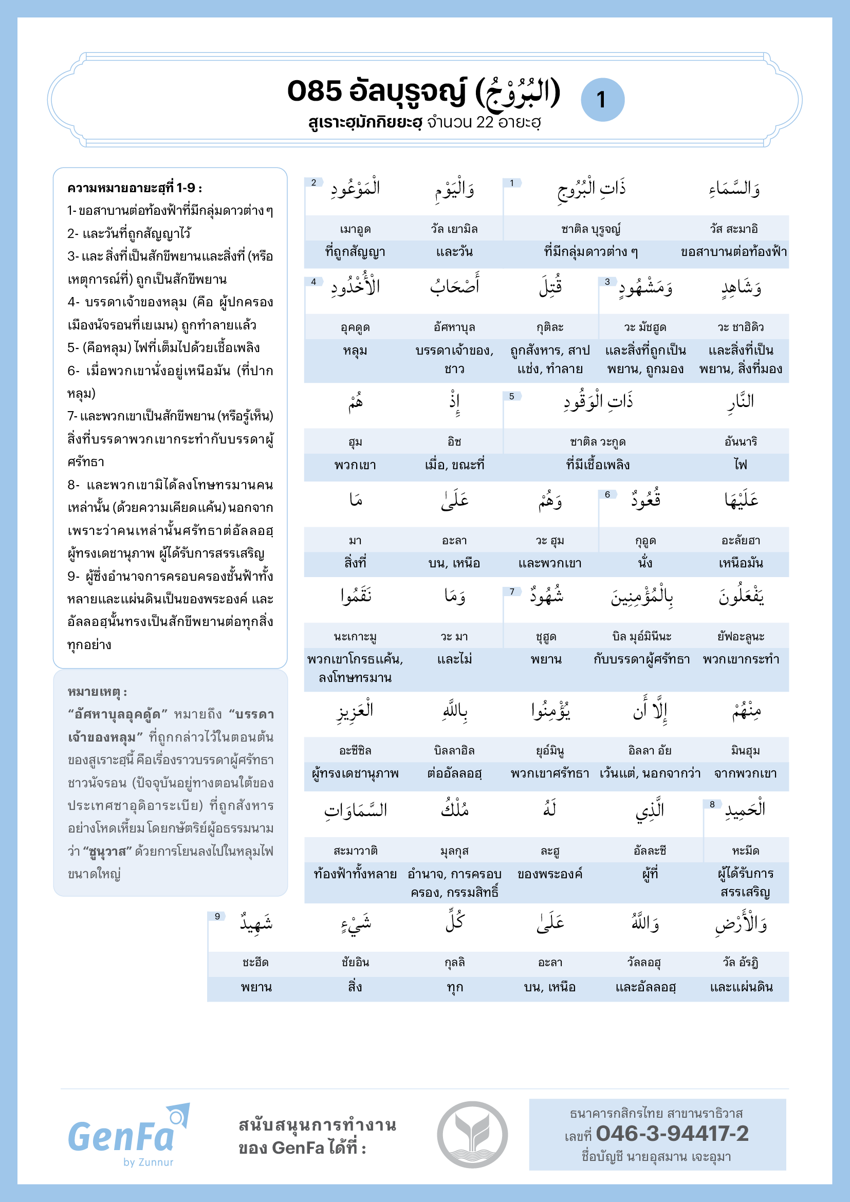 อัลกุรอานคำต่อคำ : สูเราะฮฺที่ 85 อัลบุรูจญ์